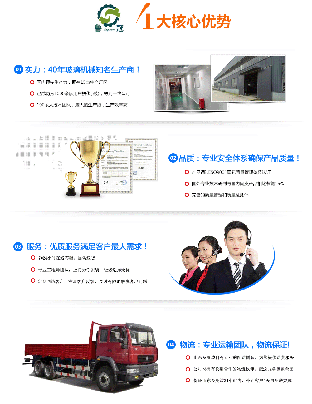 山東魯冠玻璃機械有限公司,是從事玻璃機械的老牌企業(yè),在我國玻璃制品行業(yè)上享有較高的聲譽。我公司具備良好的整體素質和技術力量,設備齊全,擁有完善的質量管理和質量檢測體系。主營產品:玻璃加料機,斜毯式玻璃加料機,懸掛式玻璃加料機,擺桿式玻璃加料機,裹入式全密封加料機等。 企業(yè)始終堅持“科學技術是主要生產力”的主導思想,不斷加大新產品研發(fā)力度,玻璃機械產品的開發(fā)生產,為適應玻璃制品行業(yè)發(fā)展需要,相繼先后研制...